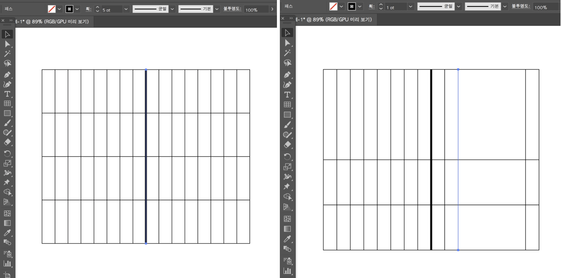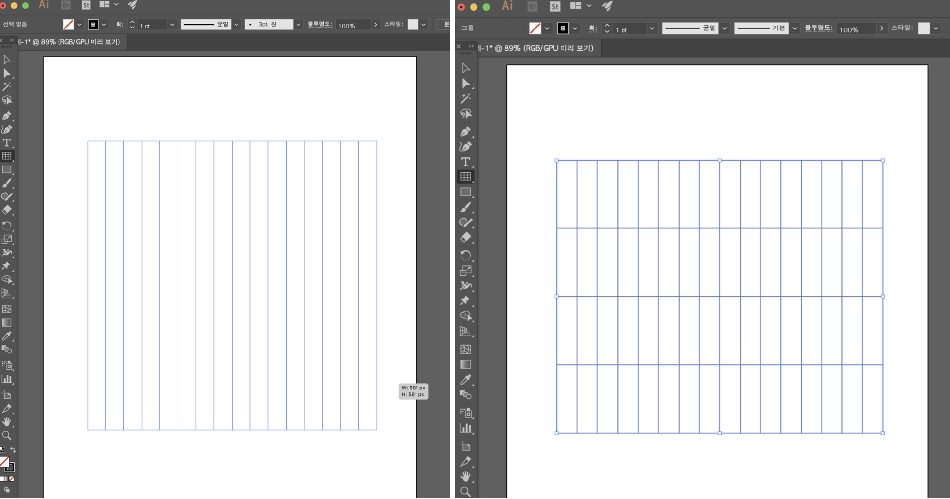 일러스트에서 엑셀처럼 셀의 행과 열의 갯수를
