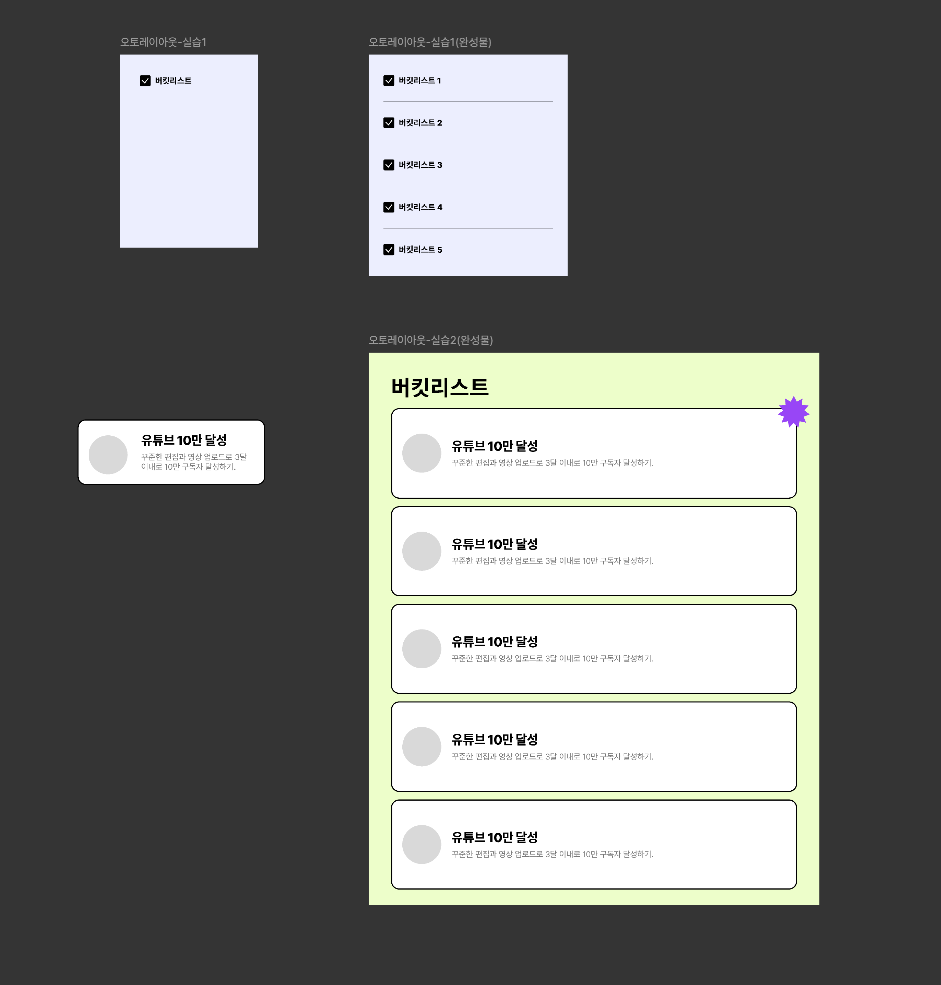 오토레이아웃 적용부터 콘스트레인트, 리사이징까지 모두 포함해서 버킷리스트 2개를 만들어봐요!