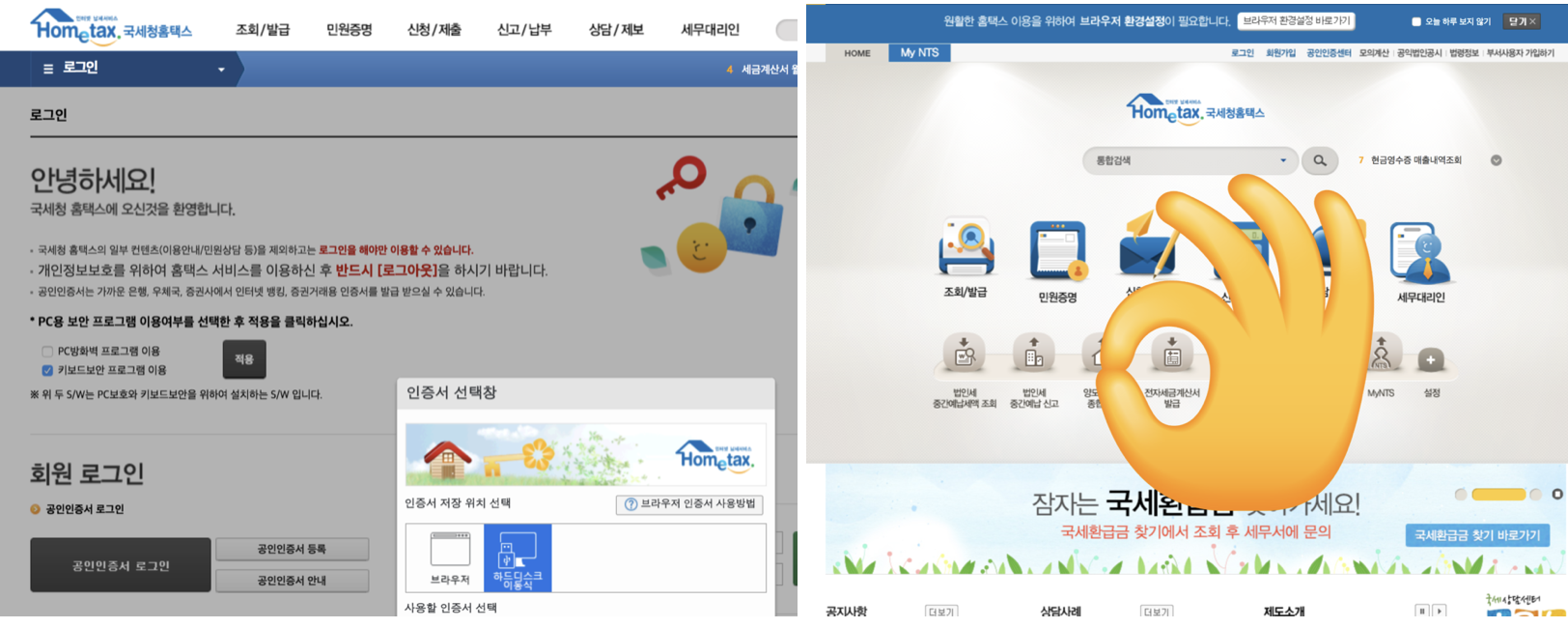 사업자로 발급받은 공인인증서로 로그인합시다!