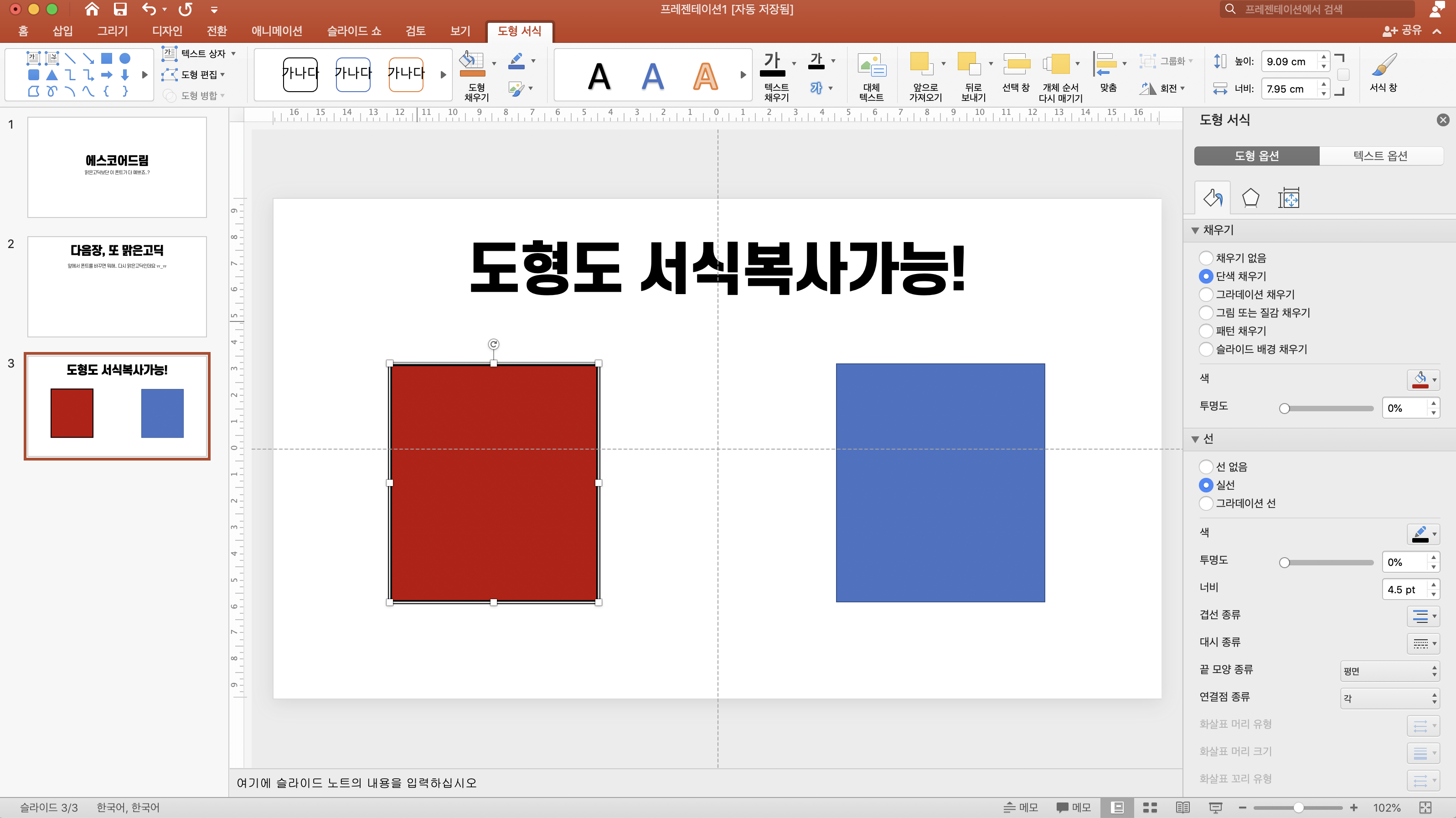 다시 도형의 색을 바꾸고 선을 만들 필요 없이 단축키 2개만으로 그대로 적용시켰답니다.