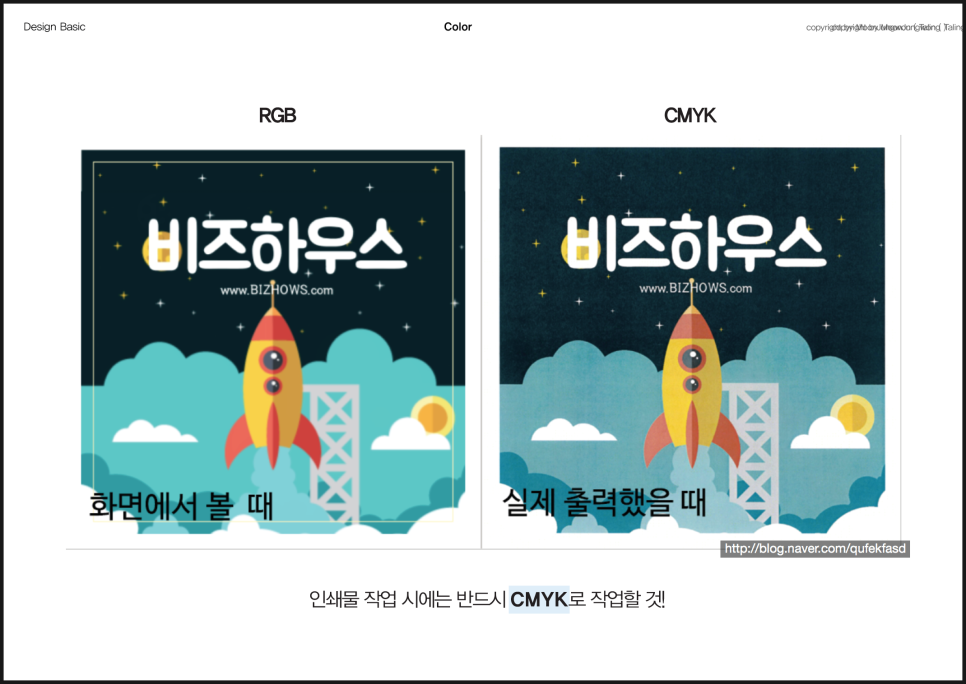 1. RGB보다 CMYK 색상이 더 탁하다.