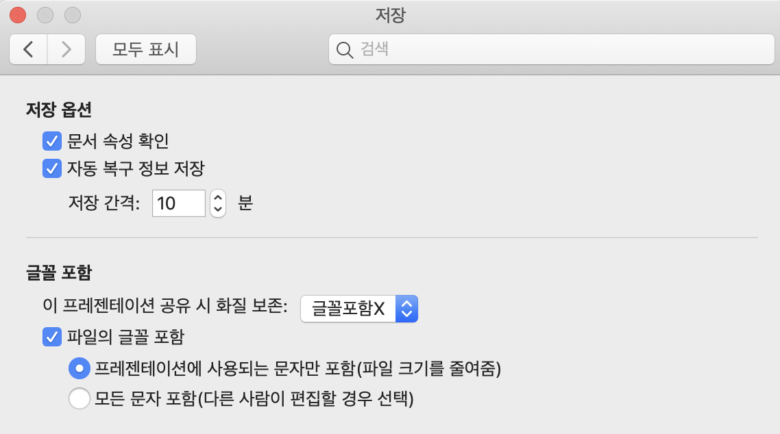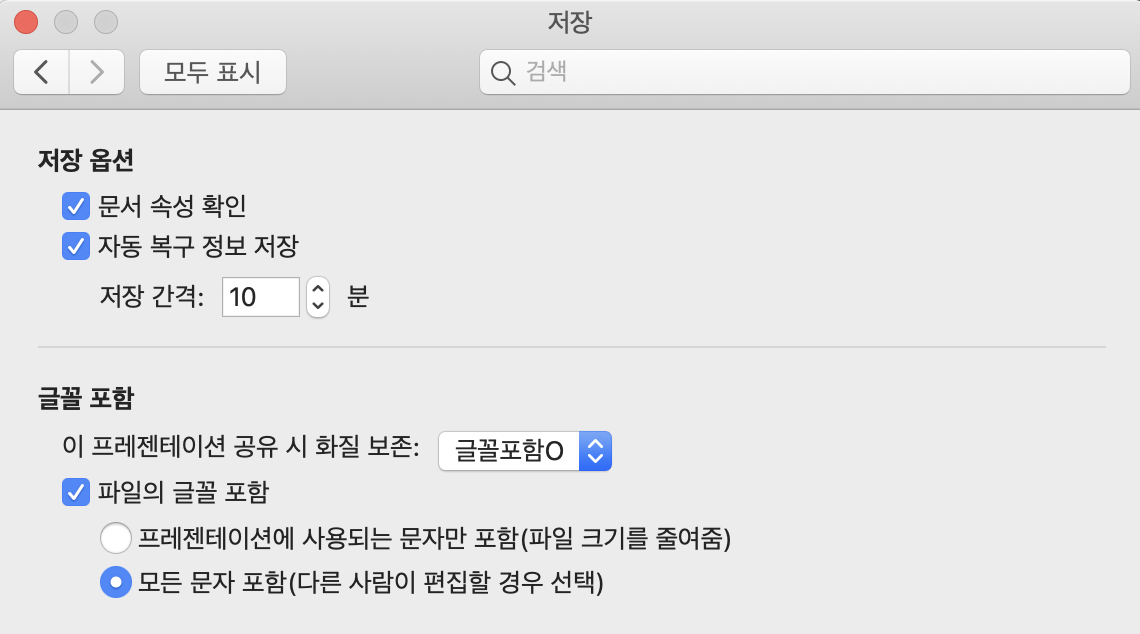 맥에서 글꼴 포함 저장하기