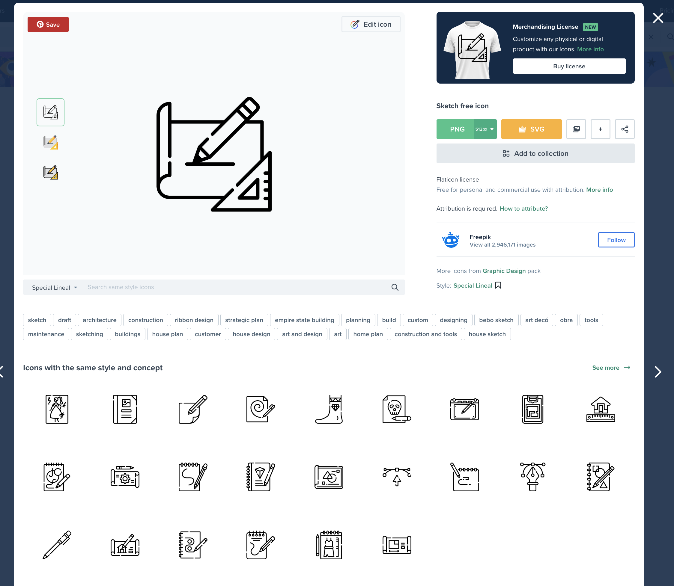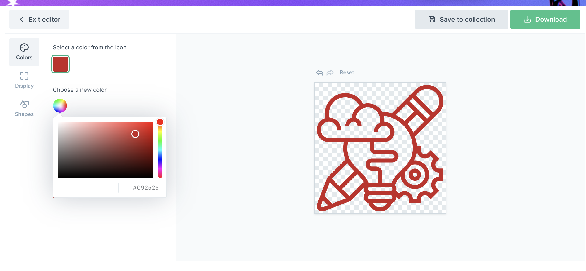 원하는 아이콘을 선택하고 'edit icon'이라는 버튼을 선택하면 원하는 컬러로 변경해서 이미지 파일로 다운받을 수 있습니다.
