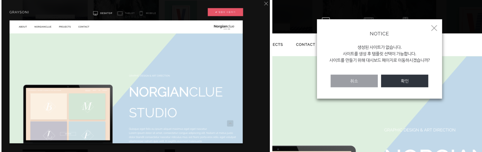 컨셉을 구축해줄 템플릿 선택을 하도록 유도하는데