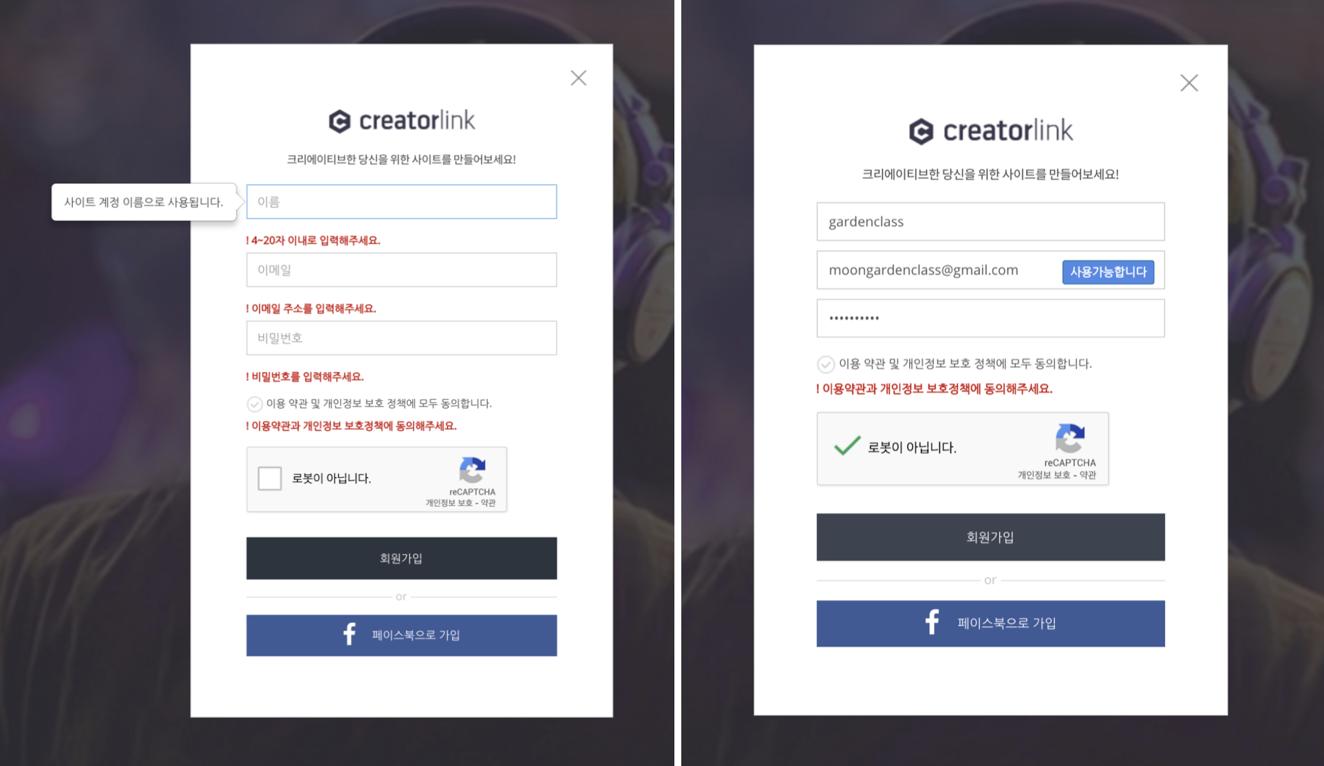 크리에이터링크 홈페이지의