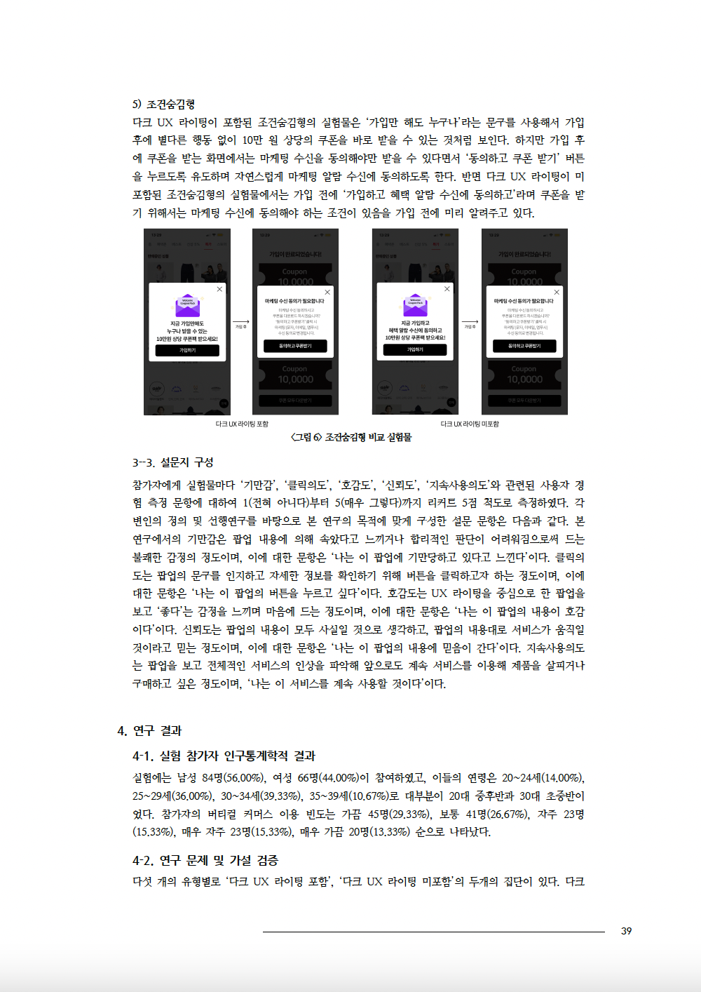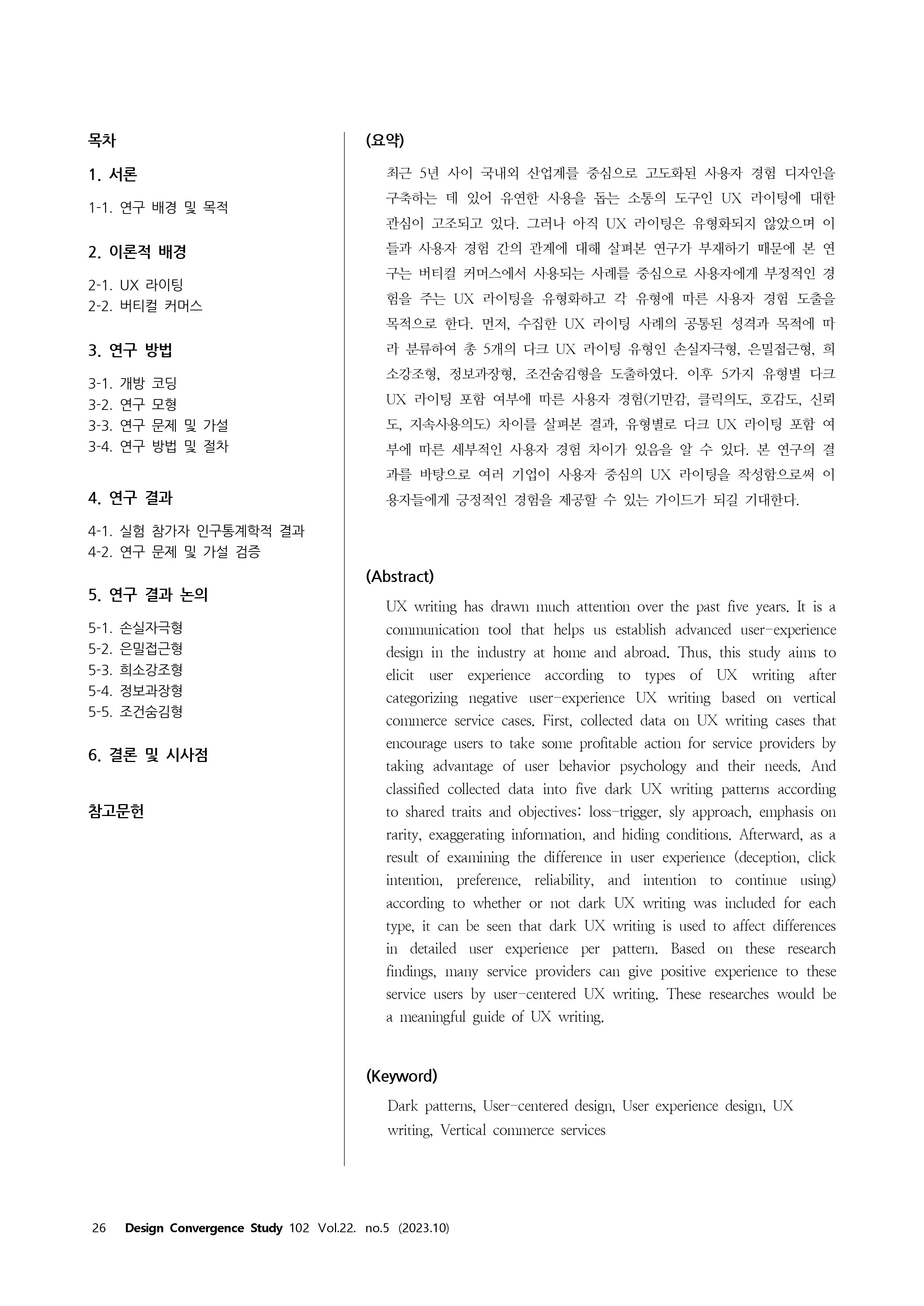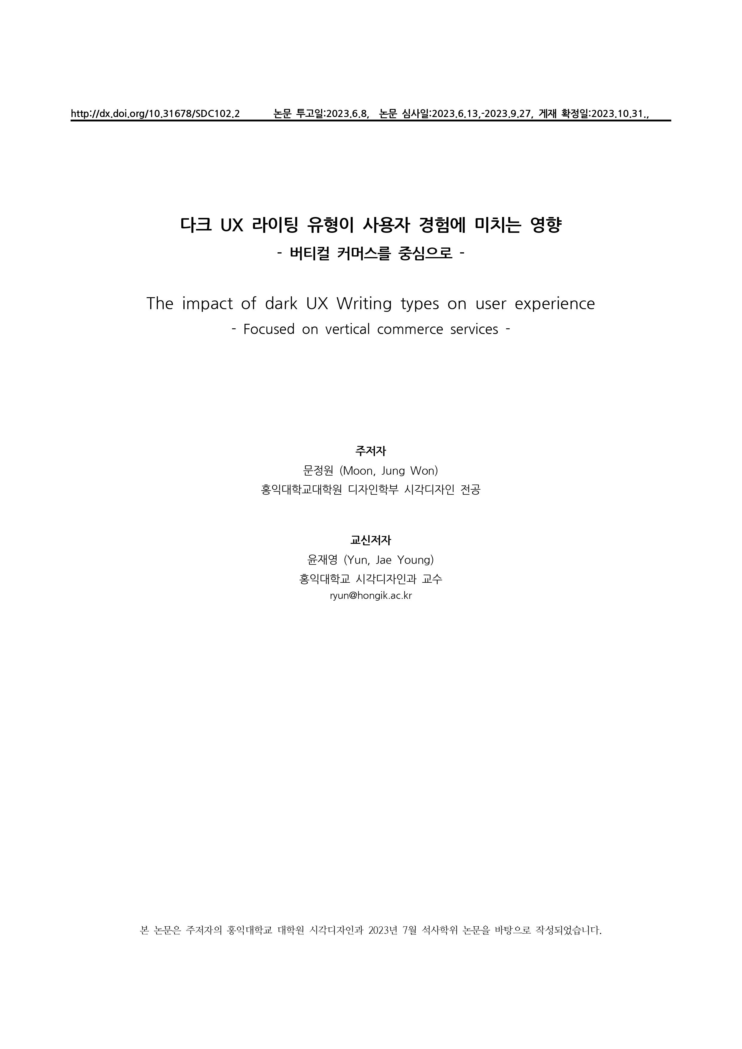 다크패턴과 UX 라이팅 유형, 그리고 사용자 경험을 논문으로 작성하다. | 2023년 7월, 홍익대학교 대학원 시각디자인 석사학위논문으로 <다크 UX 라이팅 유형이 사용자 경험에 미치는 영향 – 버티