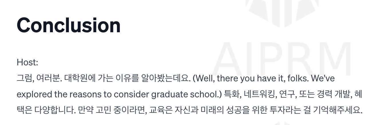 ChatGPT의 결론은 매우 동의한다. 나도 나의 미래를 위해서 박사의 길을 걸어볼 테다!