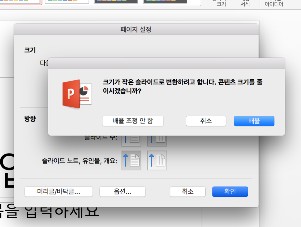 파워포인트 디자인 - 슬라이드 크기로 들어가서