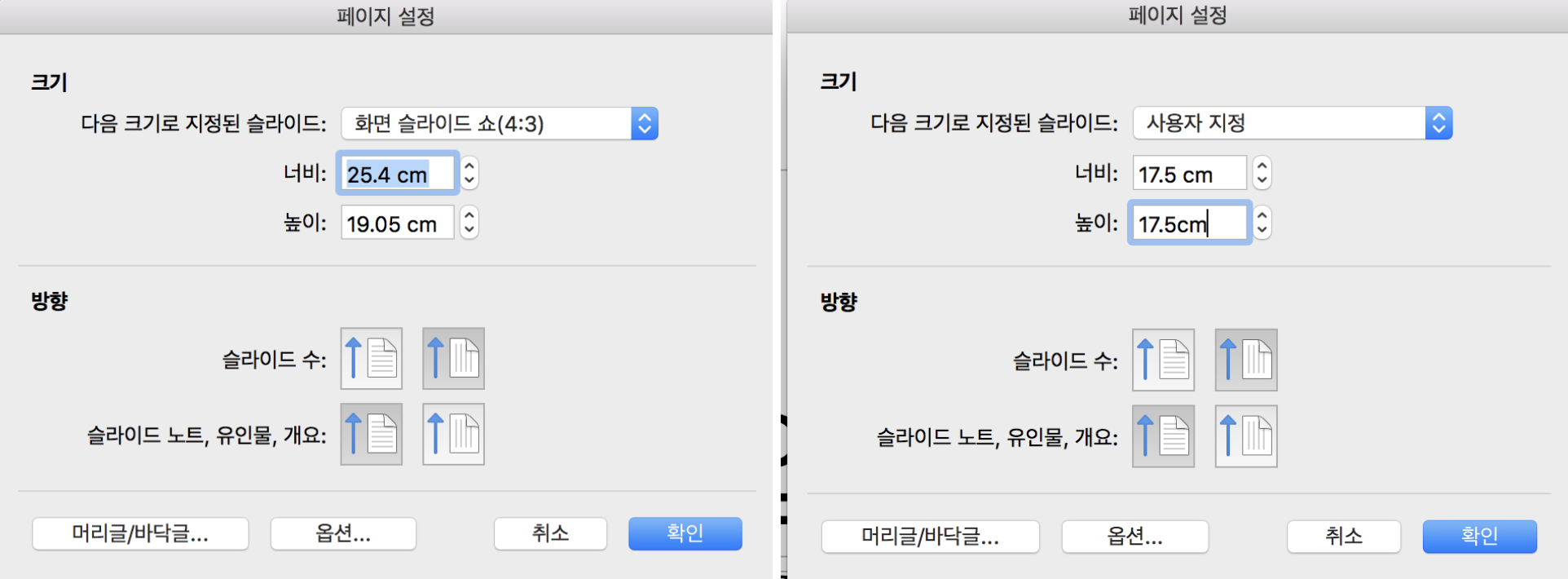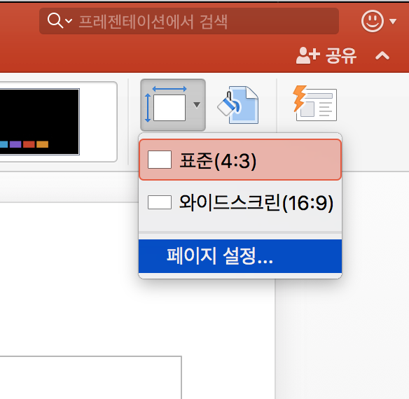 슬라이드 크기 누르면 보통 표준사이즈로 되어있어요.