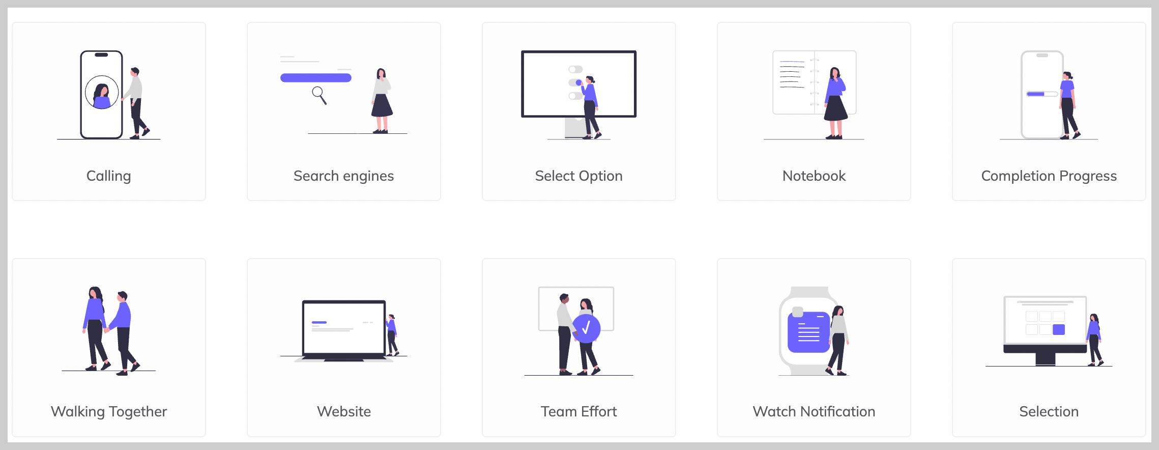 Open Peeps is a hand-drawn illustration library to create scenes of people. You can use them in product illustration, marketing, comics, product states, user flows, personas, storyboarding, quinceañera invitations, or whatever you want! ⠀
