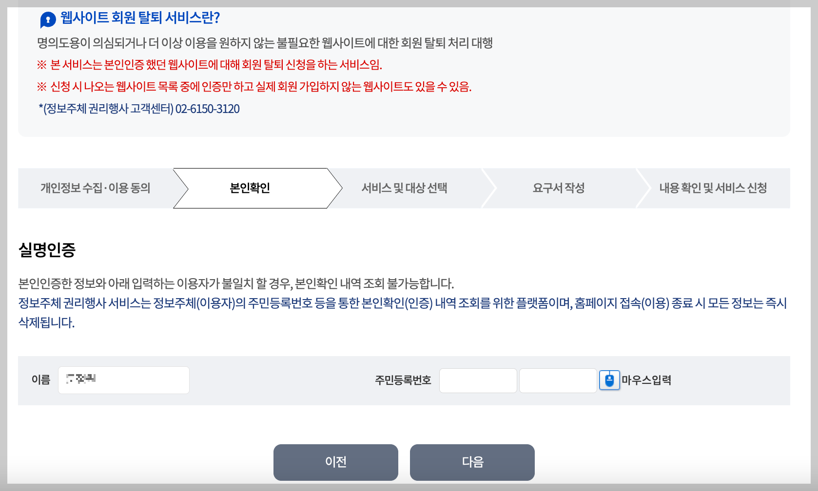 동의하지 않으면 안쓰는 웹사이트 한번에 회원 탈퇴하기가 불가능합니다.