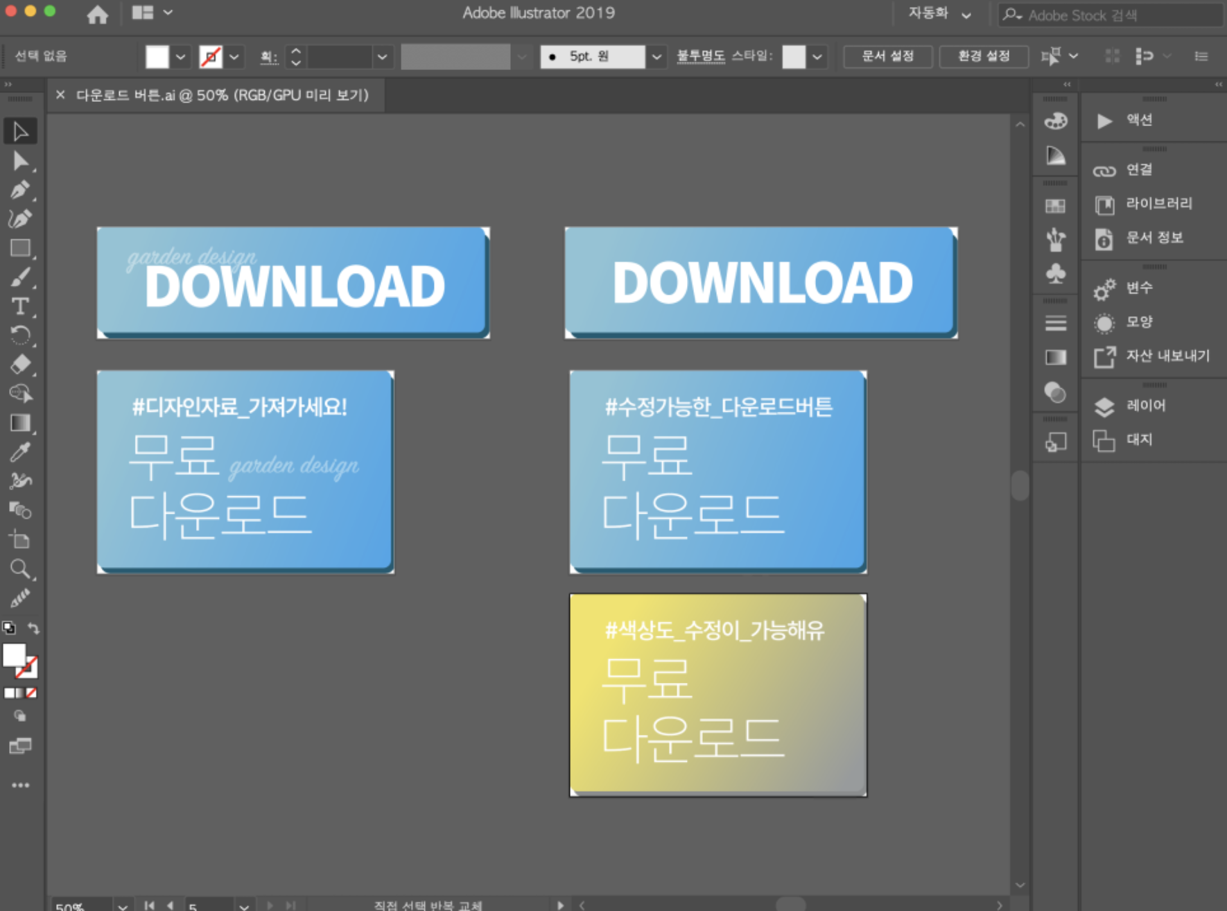 다운로드 버튼 한글 버전과 영문 버전